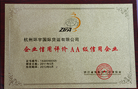 杭州環(huán)宇國際貨運有限公司企業(yè)信用評價(jià)AA級信用企業(yè)