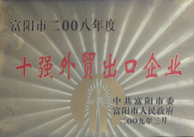 富陽(yáng)市2008年度十強外貿出口企業(yè)