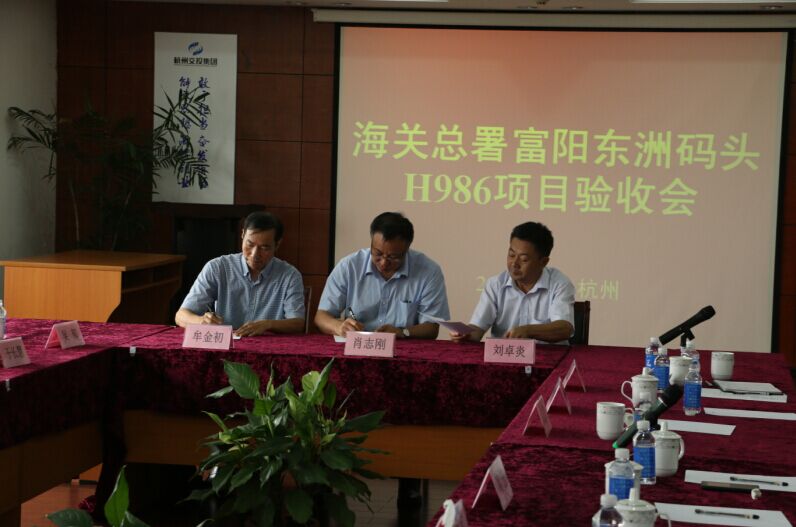 2015年7月16日,富陽(yáng)海關(guān)H986項目順利通過(guò)總署驗收,海關(guān)總署關(guān)保司、監管司、財務(wù)司、采購中心相關(guān)部門(mén)負責同志與杭州海關(guān)相關(guān)部門(mén)一行,先后視察該系統場(chǎng)地設置和運轉狀況,實(shí)地查看圖像檢查過(guò)程,對富陽(yáng)口岸海關(guān)監管場(chǎng)所掌握系統情況給予肯定。在聽(tīng)取各方情況報告、專(zhuān)家組商議和檢查相關(guān)資料后,海關(guān)總署驗收組一致同意該系統通過(guò)驗收,并簽署《驗收報告》。