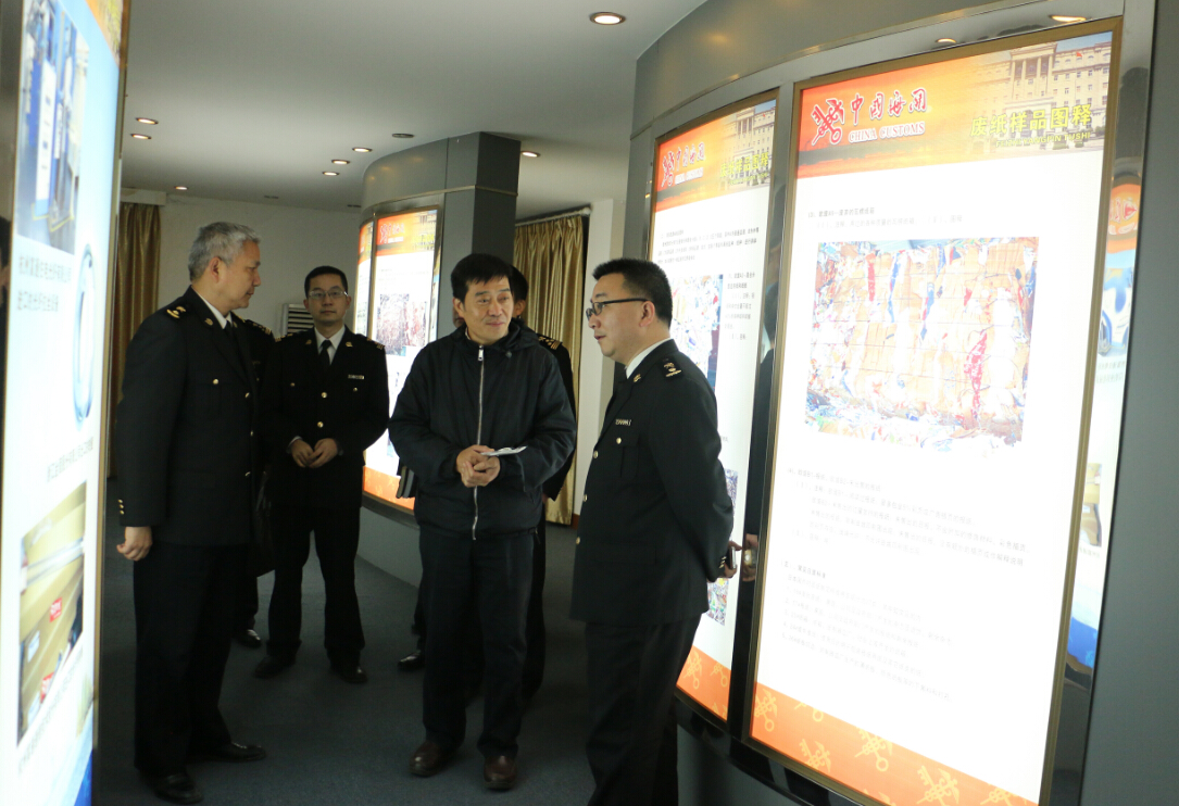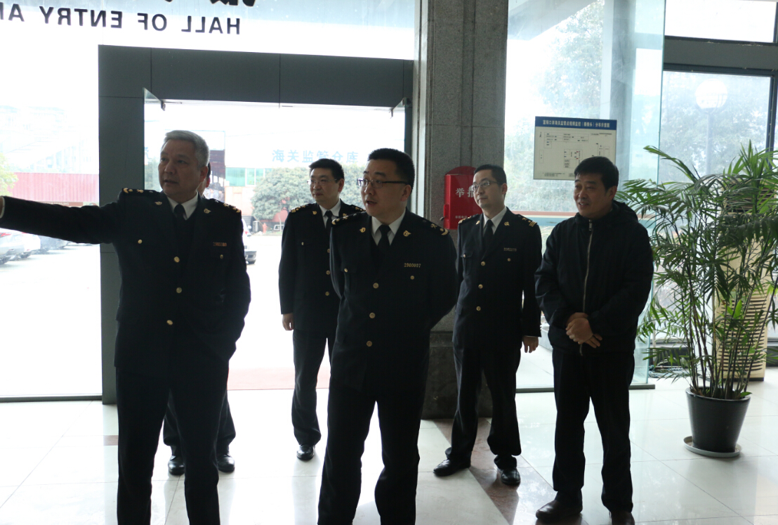 2016年3月9日上午,杭州海關(guān)張翼副關(guān)長(cháng)一行來(lái)富陽(yáng)口岸視察工作,杭州海關(guān)富陽(yáng)辦事處主任牟光明等陪同視察。張翼副關(guān)長(cháng)一行先后查看報關(guān)報檢大廳、監控機房、查驗平臺、保稅倉庫、卡口通道,實(shí)地了解富陽(yáng)口岸海關(guān)監管場(chǎng)所運作情況。集團徐林軍董事長(cháng)等陪同接待。