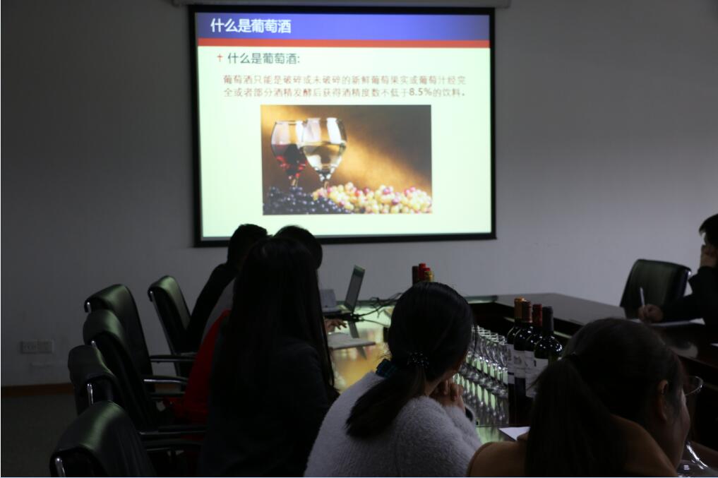 培訓會(huì )上,講解員為參加的員工詳細講解了“什么是葡萄酒、葡萄酒的種類(lèi)、紅白葡萄品種、新舊世界對比”等的葡萄酒基礎。隨后,將幾款不同品種的葡萄酒與會(huì )人員一起理論結合實(shí)際,邊品嘗邊回味葡萄酒的基礎知識。